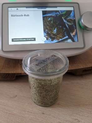 4. Getrocknete Bärlauchmischung, Salz, Pfefferkörner, Senfkörner und Zucker in den Mixtopf geben und 15 Sek./Stufe 6 zerkleinern. Bärlauch-Rub in ein Schraubglas umfüllen, kühl und dunkel aufbewahren und nach Bedarf verwenden.