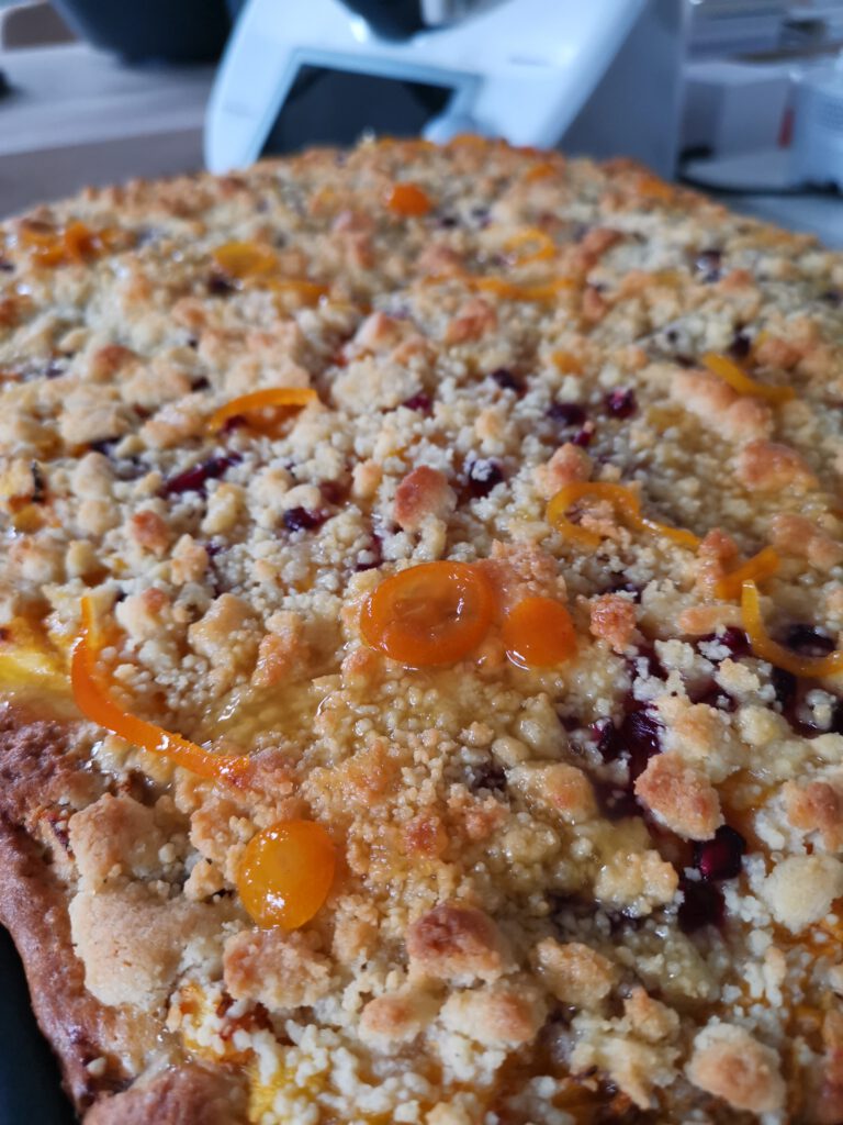 - 120 g Butter, 120 g Zucker, 200 g Mehl, 50 g Marzipan und 1 TL Vanillezucker oder Tonkabohnenzucker in den Mixtopf geben, 15 Sek./Stufe 6 zu Streuseln verarbeiten und umfüllen.